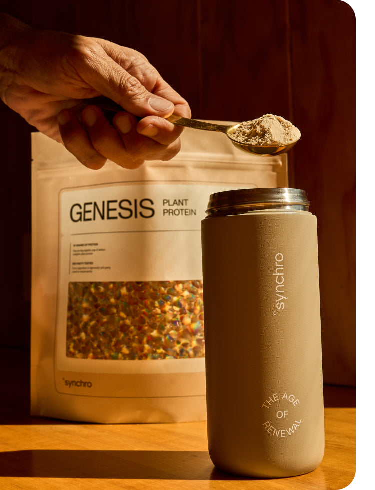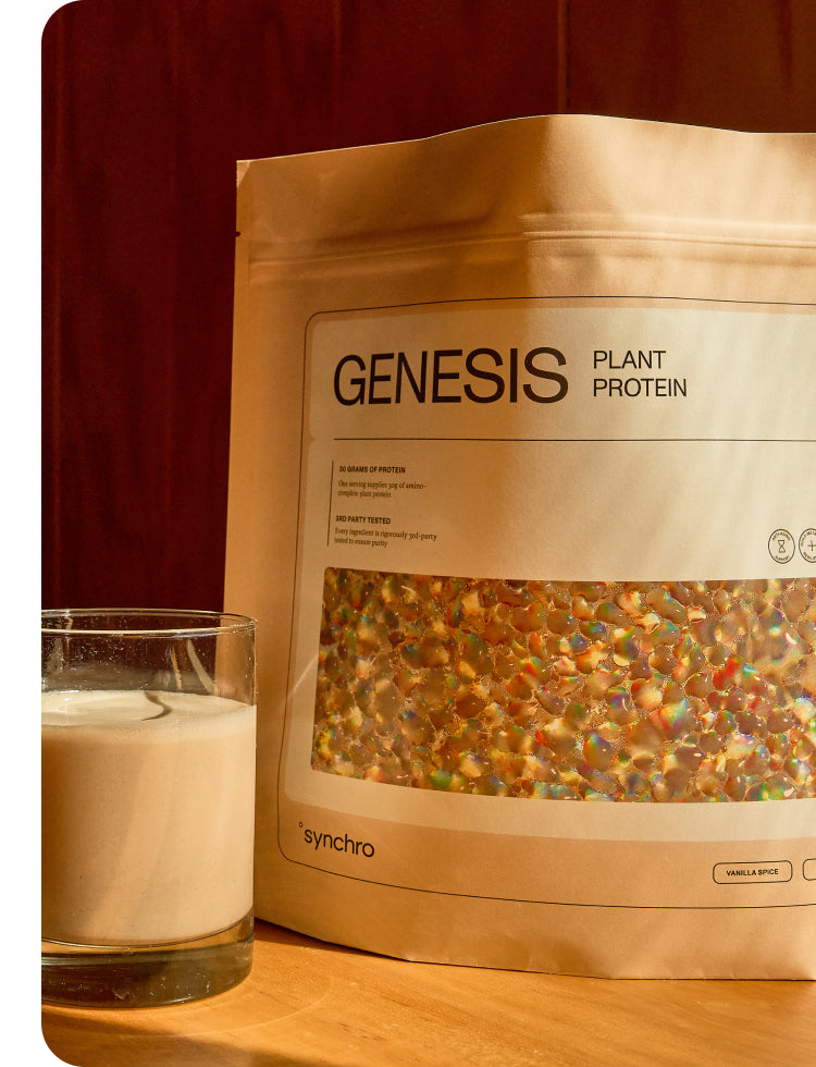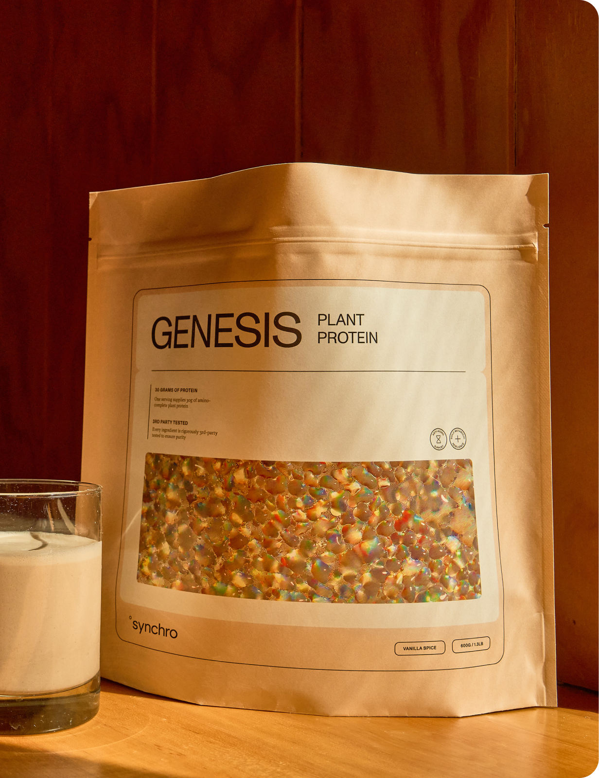 The plant protein blend in Genesis is highly digestible and formulated to provide an ideal amino acid profile. One serving of Genesis contains 30g of amino-complete plant protein.