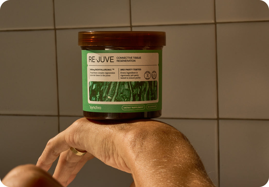 Re•Juve uses BioHyaluronic™, our proprietary complex of hyaluronan and phospholipids that supports the regeneration of synovial fluid in the joints, the material responsible for lubricating and maintaining healthy cartilage. By rebuilding synovial fluid and reducing stress on the cartilage, Re•Juve allows the damaged tissues to rebuild and heal.
