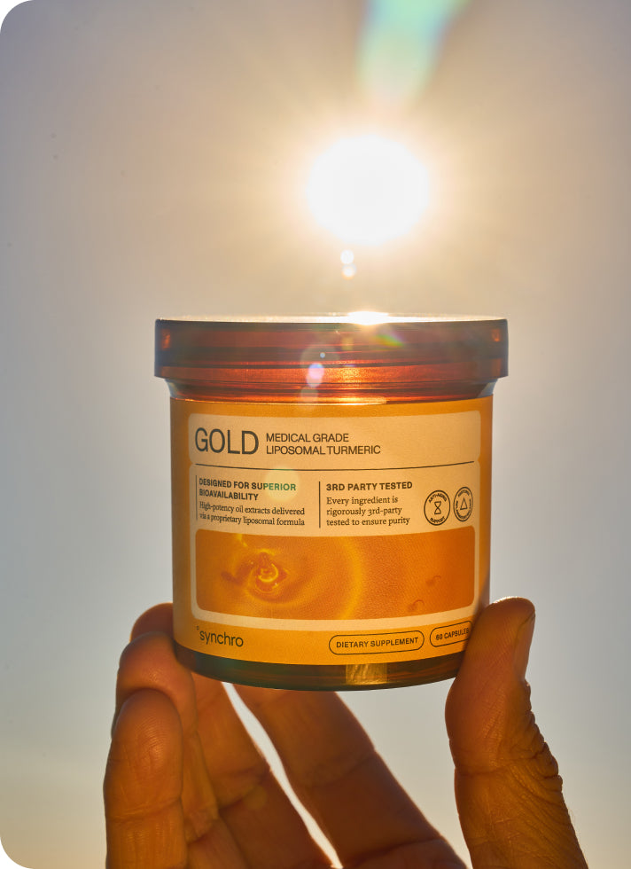 Gold utilizes a proprietary liposomal nutrient-delivery technology that improves bioavailability six-fold, while protecting the turmeric extract from degradation in the gut.