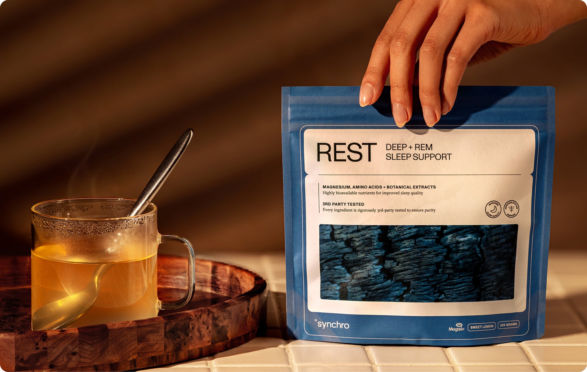 Rest takes a different approach by focusing on minerals and amino acids that work with our biology to support the brain’s natural sleep rhythms, helping you transition into Deep and REM sleep stages faster and stay in them longer.